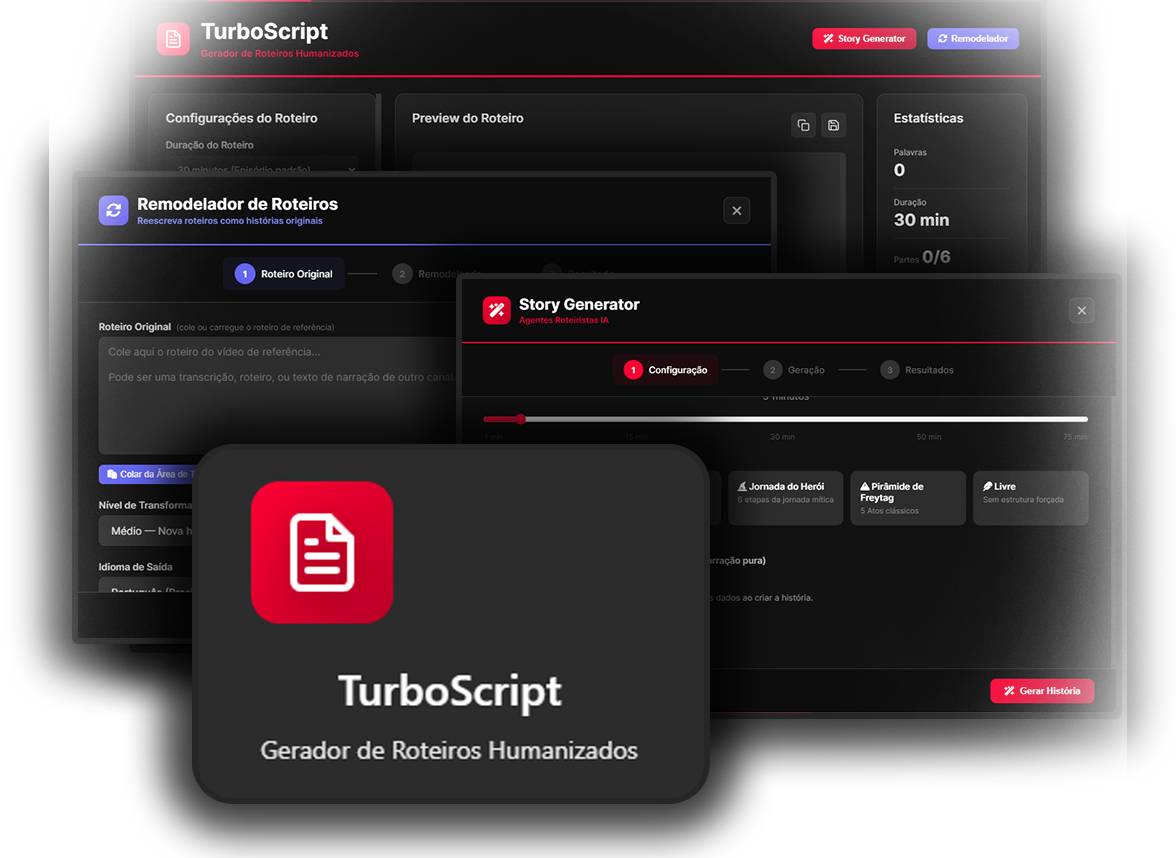 Com o “Story Generator” e o “Remodelador“, o TurboScript transforma qualquer ideia em um roteiro pronto.